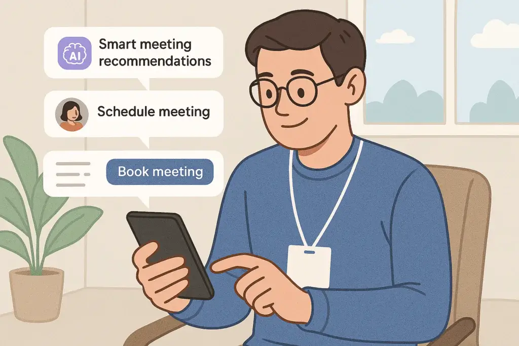 Event attendees receive AI-Powered meeting recommendation, review, and book meeting at the venue.