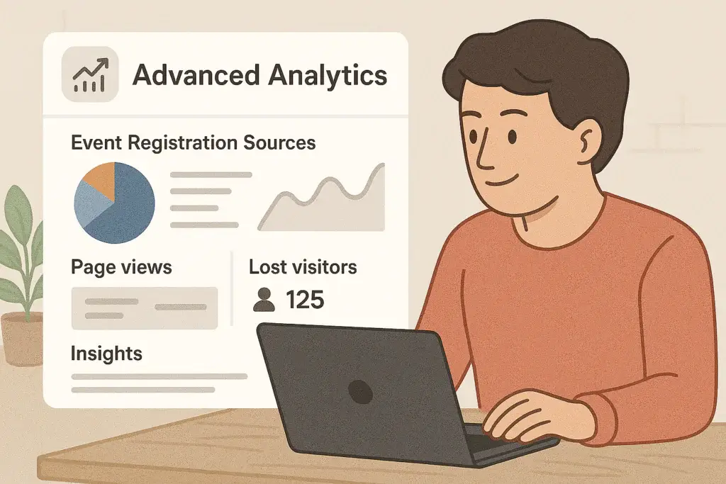 Track event registration sources, page views, lost visitors, and much more from a single dashboard.